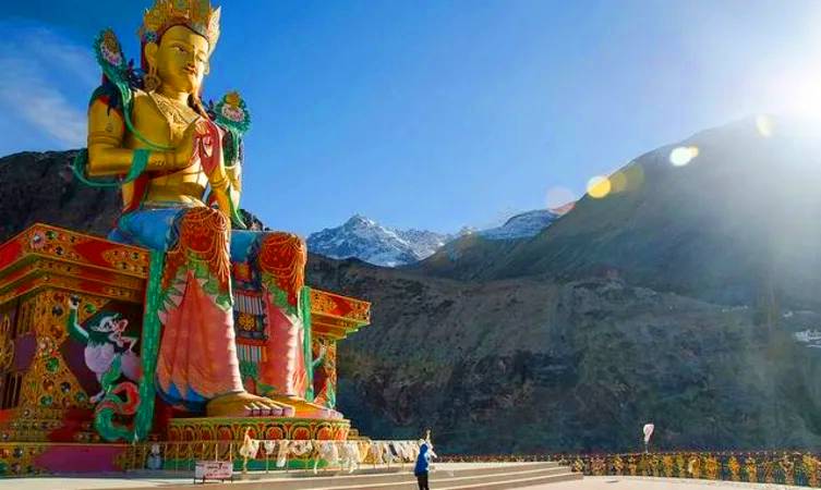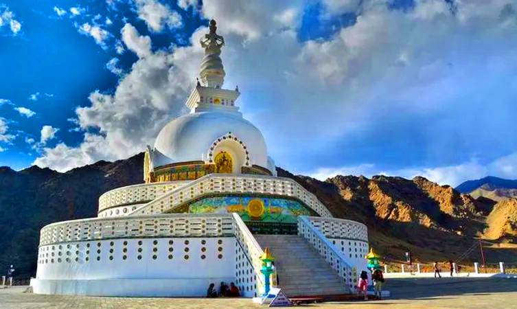 In this world, much in need of peace, the white, beautiful and serene Shanti Stupa on a hilltop in Chanspa, Leh district, Ladakh, in the north Indian state of Jammu and Kashmir provides a fabulous, unobstructed view. This white beauty amidst the snow lets you experience a moment of breathlessness and it is one of the beautiful places to see in Leh Ladakh. Situated at a height of 4267 metres, surrounded by snow-capped mountains, the Stupa is at a distance of about 5 km from the Leh City.